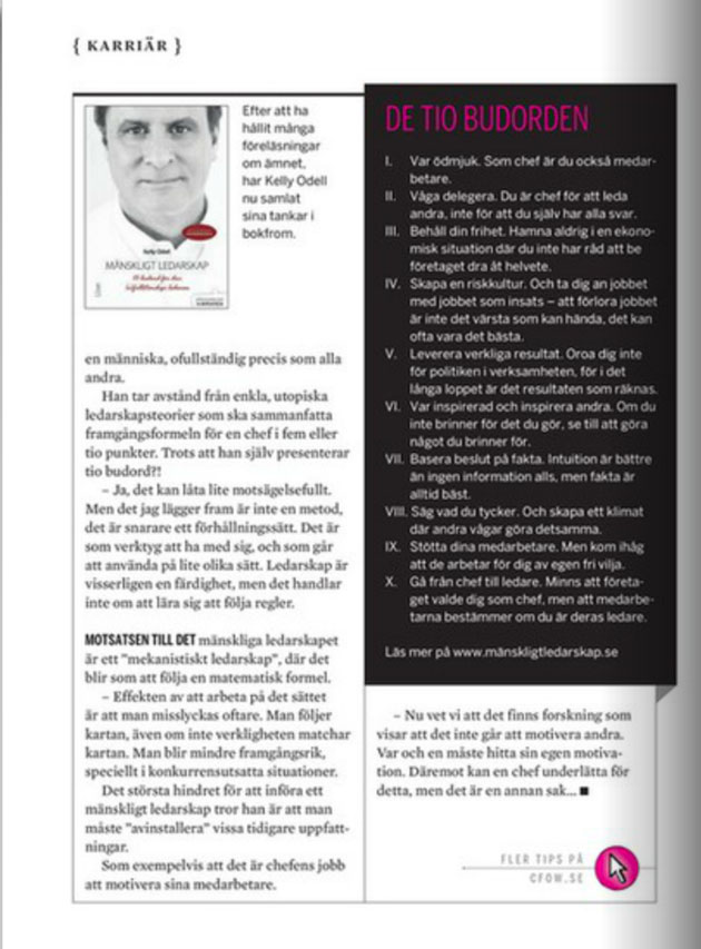 Kelly Odell med boken ”Mänskligt ledarskap” (Liber) i CFO World